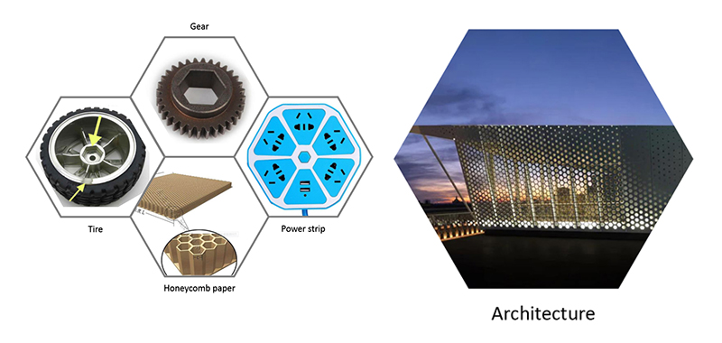 We can also notice that the Hexagon is also widely applied in our daily life, for example, the common seen high-strength bolts are hexagon, inner hex or outer hex. This structure can be evenly stressed, withstand large torques, and is widely used in the aviation, automotive, and machinery industries.